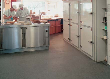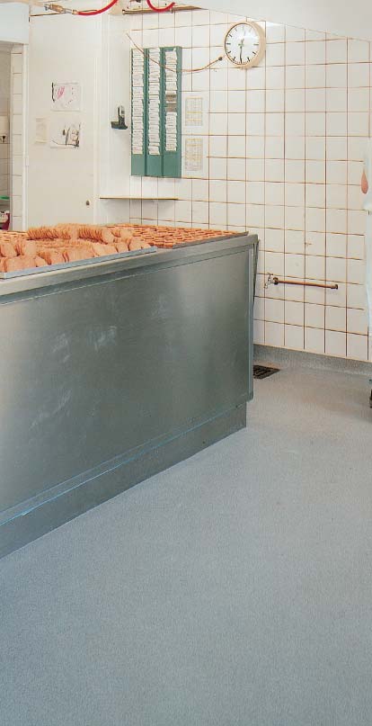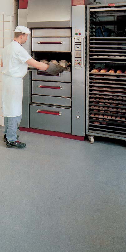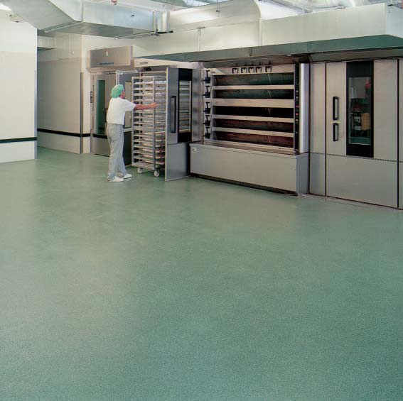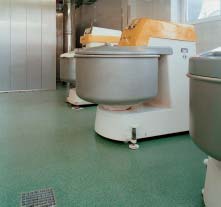 El pavimento Monile es antideslizante, impermeable, no tóxico y resistente químicamente especialmente concebido para superficies húmedas alimentarias.